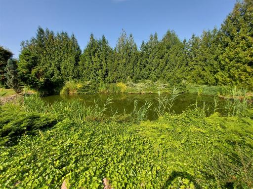 | Aranżacja działki | Drzewa, Staw, Altanka |