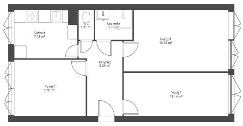 Mieszkanie rozkładowe 3 pokoje 54 m²