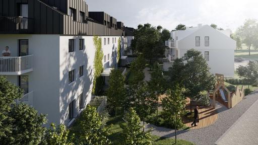 Każde z mieszkań posiada balkon lub taras z ogródkiem.