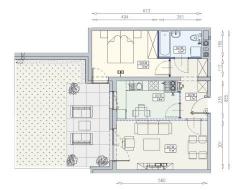 Mieszkanie 2 pokojowe o powierzchni 48,7 m2 , usytułowane na parterze z tarasem.
