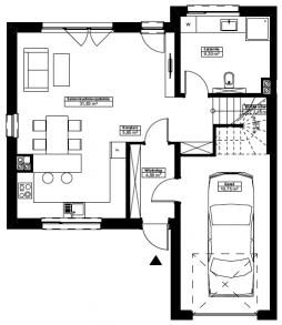 Układ parteru stanowią: Wiatrołap (4.59 m²), Korytarz (5.85 m²), Salon+kuchnia+jadalnia (31.83 m²), Łazienka (9.3 m²), Klatka schodowa (2.16 m²) i Garaż (19,75m2)