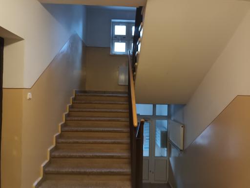 Właściciel korzysta z 2 metrowej piwnicy z zabudowanej półkami i regałami. Klatka schodowa jest czysta i zadbana.