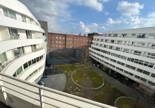 Apartament znajduje się na 5 piętrze od wewnętrznej strony z widokiem na duże zielone Patio