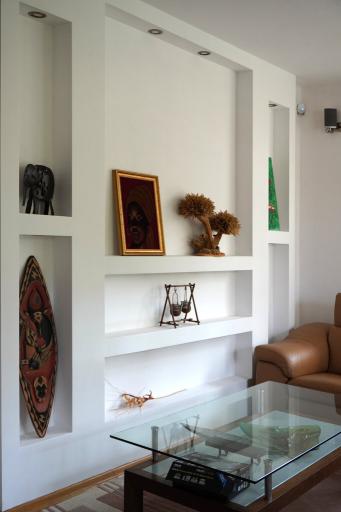 Parter jest podzielony w harmonijnie łączące się funkcje wypoczynkowe, rekreacyjne, telewizyjne i konsumpcyjne.