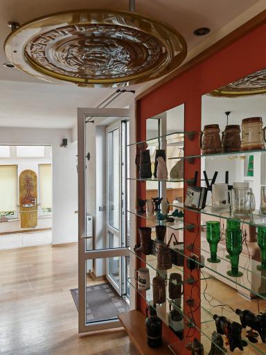 W domu utrzymana jest spójna i zrównoważona architektura o charakterze małego pałacyku. Dom jest przestronny i rozłożysty, z dużym holem, salonem z kominkiem, oranżerią, aneksem jadalnym, kuchnią ze spiżarką i pomieszczeniem gospodarczym.