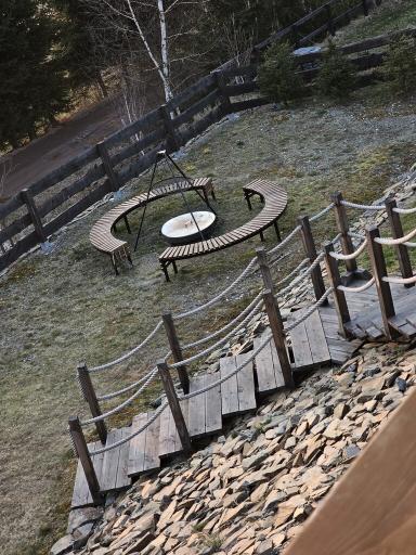 Wszystkie skarpy są wyłożone łupkiem szarogłazowym - nie trzeba kosić ;) Wykonano również schody drewniane, działka jest obsadzona drzewami iglastymi, brzozami, hortensjami oraz azaliami.