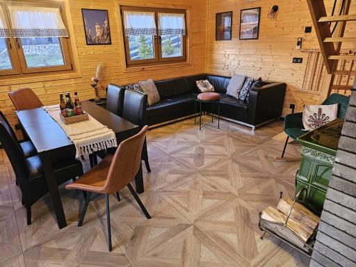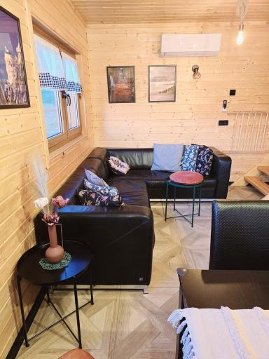 Dom składa się z parteru, poddasza oraz podpiwniczenia. Dom zbudowany w systemie szkieletowym w 2020 roku. Ocieplony wełną mineralną, kryty blachodachówką, okna Adams, drzwi i okiennice drewniane, schody drewniane. Parter - powierzchnia 36 m2, salon, aneks kuchenny, łazienka. W salonie panele, w łazience oraz kuchni gres, na ścianach deska boazeryjna lakierowana lakierem bezpiecznym dla zdrowia. Zabudowa kuchenna oraz sprzęt i wyposażenie wliczone w cenę sprzedaży. Na poddaszu dwie sypialnie, jedna z balkonem, na ścianach deska boazeryjna, podłoga drewniana, a także włoski gres imitujący parkiet.