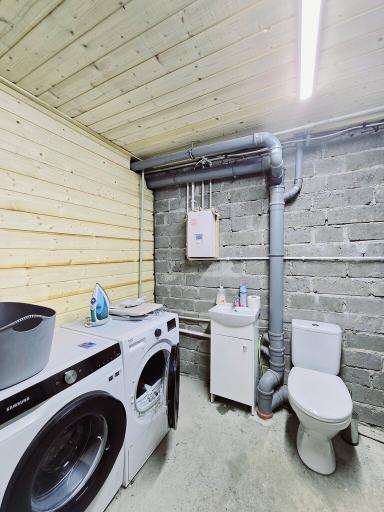 Podpiwniczenie murowane, ocielone. Składa się z dużej sali (obecnie znajdują się tam rzutki oraz stół bilardowy, pomieszczenia gospodarczego, dodatkowej toalety i pralni.