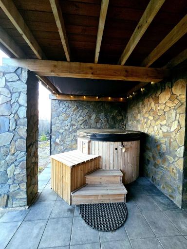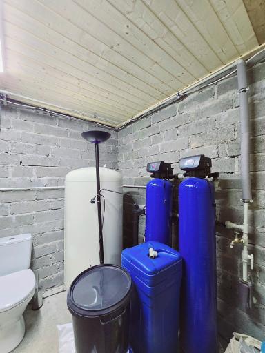 Woda z własnego ujęcia - wywiercona studnia głębinowa na głębokość 27m. Własna stacja uzdatniania wody - woda z kranu jest zdatna do picia. Instalacja wyposażona również w wysokiej jakości pompę oraz hydrofor. Ciepłą wodę zapewnia przepływowy podgrzewacz wody Kospel o mocy 24kw.
