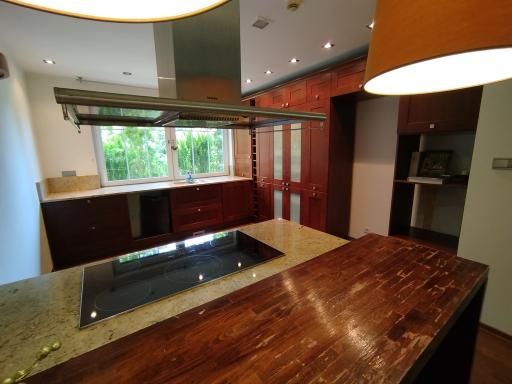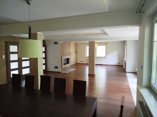 - bardzo duży salon z kominkiem 77m2 (z bezpośrednim wyjściem na taras i ogród) otwarty na jadalnię z otwartą kuchnią 13m2
