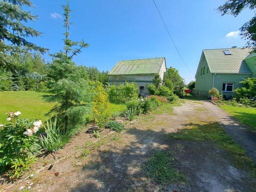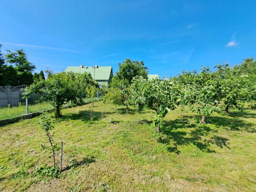 Duża działka na której dzisiaj znajduje się przydomowy sad owocowy i pomieszczenia gospodarcze umożliwia prowadzenie nieuciążliwej działalności lub podziału na 2 mniejsze działki.