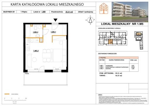 Na sprzedaż 1 pokojowy apartament o powierzchni 35,31 mkw z balkonem o powierzchni 10,37 mkw położony na pierwszym piętrze 3 piętrowego budynku apartamentowego.