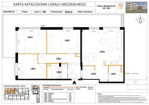 Na sprzedaż 4 pokojowy apartament o powierzchni 98,99 mkw z tarasem o powierzchni 36,60 mkw położony na pierwszym piętrze 3 piętrowego budynku apartamentowego.