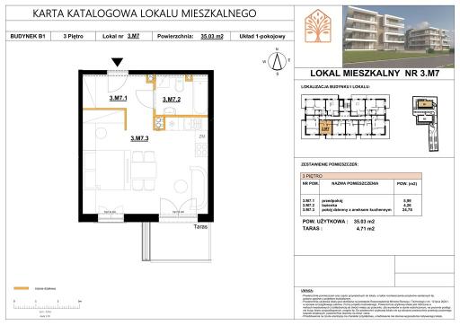 Na sprzedaż 1 pokojowy apartament o powierzchni 35,03 mkw z balkonem o powierzchni 4,71 mkw położony na trzecim piętrze 3 piętrowego budynku apartamentowego.