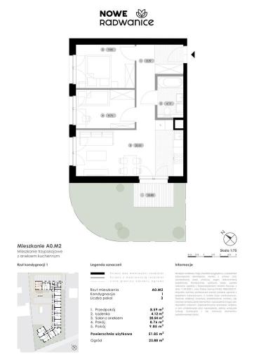 Mieszkanie 3 pokoje 51.85 m² - Nowe Radwanice