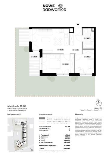 Mieszkanie 3 pokoje 50.09 m² - Nowe Radwanice
