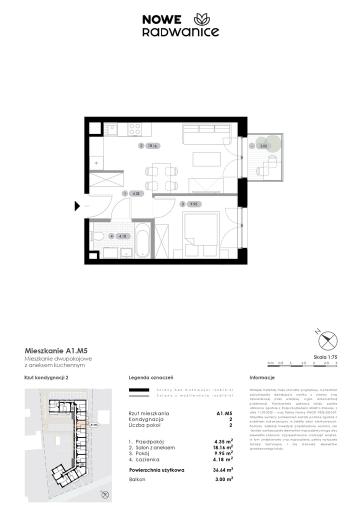 Mieszkanie 2 pokoje 36.64 m² - Nowe Radwanice