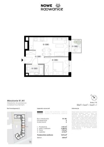 Mieszkanie 2 pokoje 34.96 m² - Nowe Radwanice