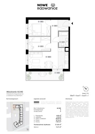 Mieszkanie 3 pokoje 51.85 m² - Nowe Radwanice