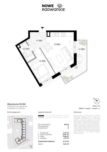 Mieszkanie 2 pokoje 41.79 m² - Nowe Radwanice