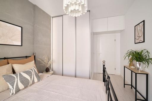 - sypialnię z wygodnym łóżkiem i dużą szafą,