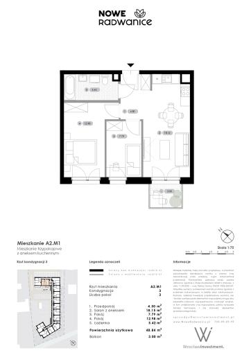 Mieszkanie rozkładowe 3 pokoje 48.84 m² -