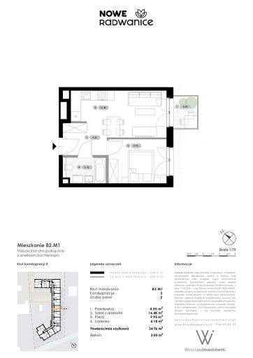 Mieszkanie rozkładowe 2 pokoje 34.96 m² -