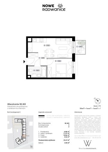 Mieszkanie rozkładowe 2 pokoje 35.67 m² -