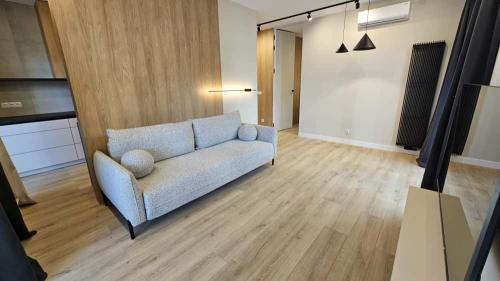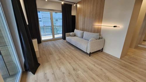 Mieszkanie zostanie uzupełnione o brakujące elementy (kanapy) – zdjęcia nie oddają jeszcze pełnego wykończenia