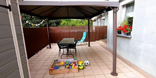 Ogromny taras 40 m² – idealne miejsce na relaks, spotkania z przyjaciółmi, poranną kawę czy wieczorny chillout. Pawilon + domek ogrodowy w zestawie.