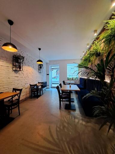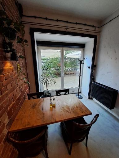 Lokal jest dwustronny z głównym wejściem od ulicy + witryna i dodatkowymi wyjściami od zaplecza, które pozwalają na bezkonfliktowe dostarczenie towaru. Ściana ogródka została ozdobiona niebanalnymi muralami przedstawiającymi scenkę z życia Wrocławskiej dzielnicy Nadodrze.