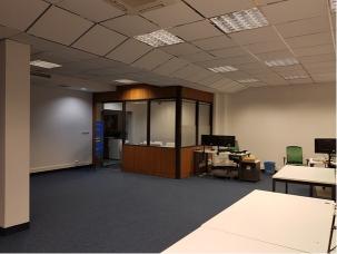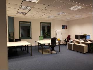 składa się z: wydzielone 2 pokoje ściankami szkło-drewno oraz duże pomieszczenie typu openspace . Wydzielona część socjalna poprzez korytarz łączy aneks kuchenny , dwie duże toalety damską i męską.