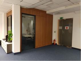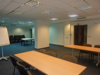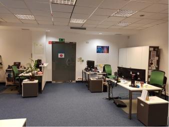 składa się z: wydzielone 2 pokoje ściankami szkło-drewno oraz duże pomieszczenie typu openspace . Wydzielona część socjalna poprzez korytarz łączy aneks kuchenny , dwie duże toalety damską i męską.