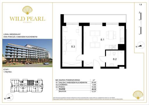 Apartament 2 pokoje 46.52 m² - WILDPEARL