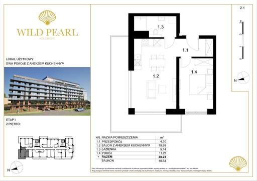 Mieszkanie 2 pokoje 40.23 m² - WILDPEARL