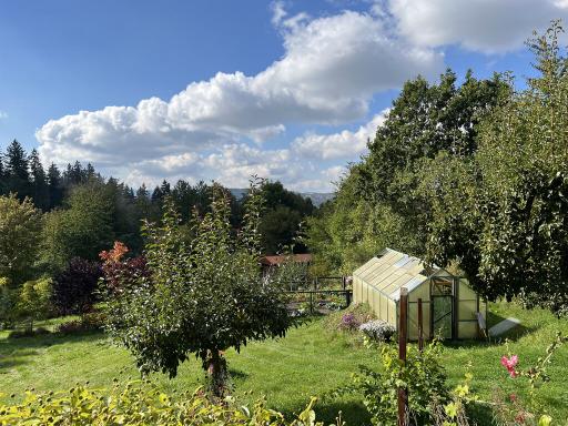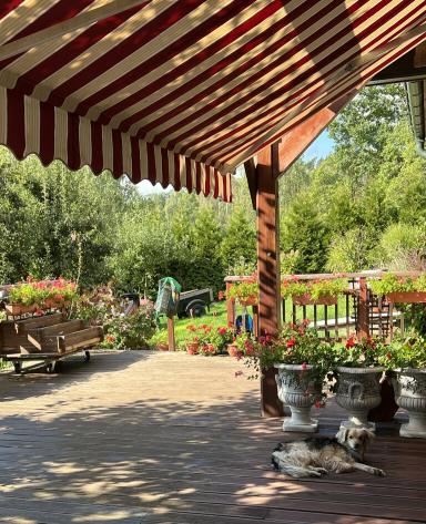 Z salonu wyjście na ponad 60 metrowy taras, z którego jest cudowny widok na Góry Stołowe i szczyt Szczeliniec, okoliczne lasy i oczywiście olbrzymi ogród z licznymi nasadzeniami i częścią eko-ogrodniczą.