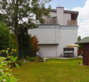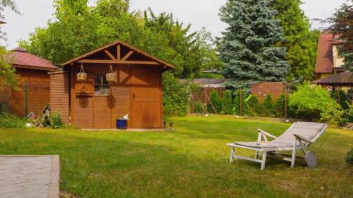 Przestrzeń, która daje pełną swobodę i relaks. Ogród na tyle duży, że pomieści grill dla 40 osób, a jednocześnie łatwy w utrzymaniu.