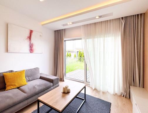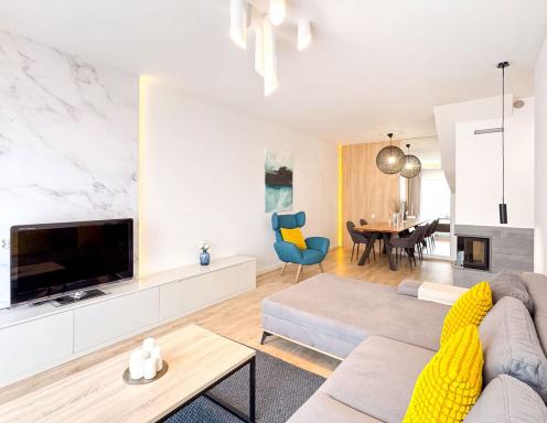 Dom jest w pełni umeblowany, zaprojektowany przez architekta wnętrz.