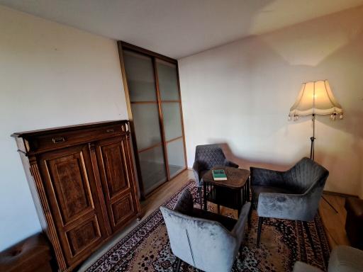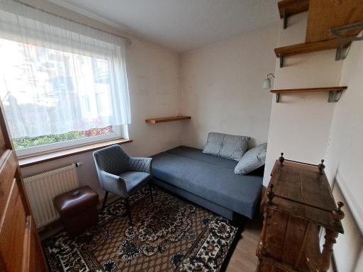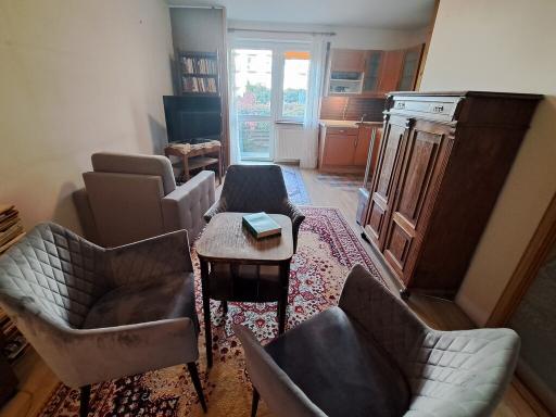 Mieszkanie jest w pełni umeblowane i wyposażone (w przedpokoju i pokoju dwie duże szafy wnękowe) po lekkim odświeżeniu gotowe do zamieszkania. Zdjęcia przedstawiają aktualny stan mieszkania.