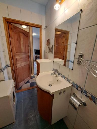 Rozkład mieszkania to: przedpokój z którego przechodzimy do pokoju dziennego z otwartą kuchnią oddzielnej sypialni oraz łazienki z wanną, pokój dzienny połączony jest z ogródkiem (zielony taras ok. 19 mkw).