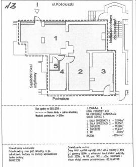 Lokal ma powierzchnię użytkową 105,41 m2 . Dodatkowe wejście od zaplecza.
