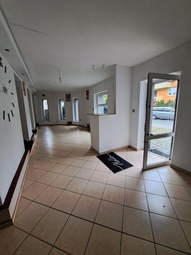 - otwartej przestrzeni gdzie wcześniej była recepcja, poczekalnia i stanowiska fryzjerskie,