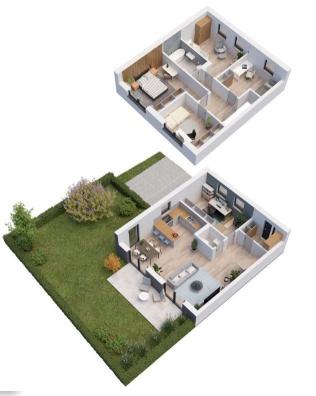 Każdy dom został zaprojektowany z myślą o maksymalnym komforcie mieszkańców. Wnętrza są jasne, przestronne i funkcjonalne.