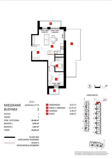 Mieszkanie 2 pokoje 45.46 m² -
