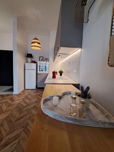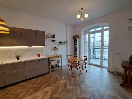 Do wykończenia użyto wysokiej klasy materiałów, mieszkanie jest w pełni umeblowane i wyposażone w podstawowe sprzęty agd.