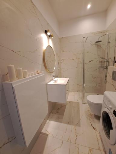 | Wyposażenie łazienek | Pralka, Prysznic |