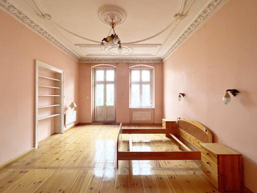 Mieszkanie ma 127,21 m2 oraz znajduję się na pierwszym piętrze. Posiada 3 pokoje :- kuchnię,-łazienkę, toaletę oraz przedpokój. Mieszkanie przeszło kapitalny remont w 2005 r. założona jest nowa instalacja elektryczna i wodno-kanalizacyjna, ogrzewanie elektryczne płyty grzewcze marmurowe- bardzo ciepłe. Okna drewniane trzy szybowe, wyremontowany balkon z balustradą . Podłoga w mieszkaniu z modrzewia. Dorobiona garderoba. Do mieszkania przynależy piwnica ok.20 m2 spiżarnia 5m2, część pomieszczenia strychowego.
