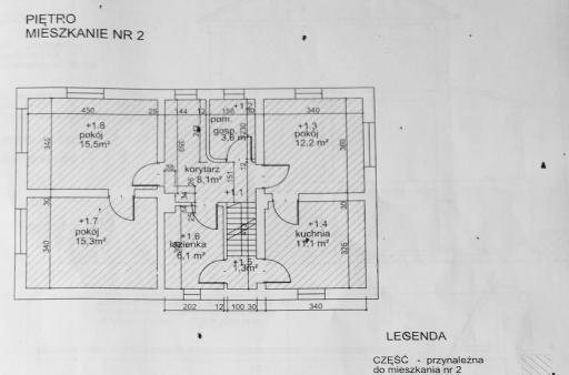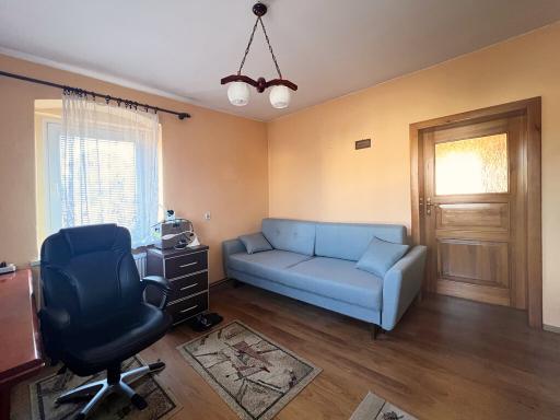 Usytuowany na piętrze lokal mieszkalny składa się z 3 pokoi o powierzchniach 12,2m2, 15,3m2, 15,5m2, dużej kuchni 11,1m2, łazienki i pom. gospodarczego. Z mieszkania mamy rownież bezpośredni dostęp do poddasza, które można zaadaptować na dodatkowe pokoje (po podłodze ok 32m2, pow. użytkowa 15,90m2).