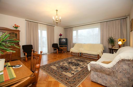 Jasne i przestronne wnętrze emanuje ciepłem i zapraszającym klimatem. Porządne, drewniane podłogi dodają charakteru i przytulności.