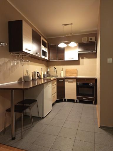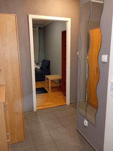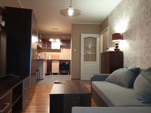 Mieszkanie składa się z: pokoju dziennego z wyjściem na balkon (7 mkw), sypialni od strony zachodniej, kuchni w aneksie, łazienki z kabiną prysznicową. Bezpieczne, zielone i spokojne miejsce, oddalone od głównej ulicy. Niskie koszty utrzymania, czynsz 450 zł/miesiąc (w tym ogrzewanie miejskie oraz zaliczka na wodę).